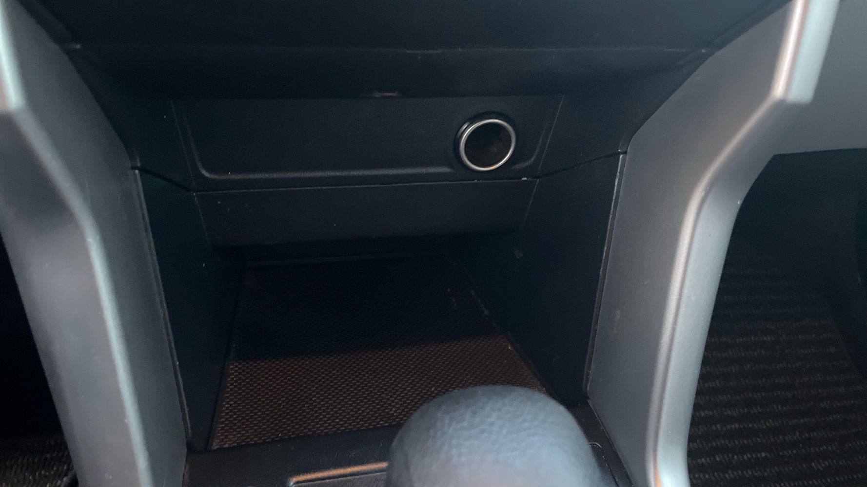 Floor console storage: Covered floor console storage