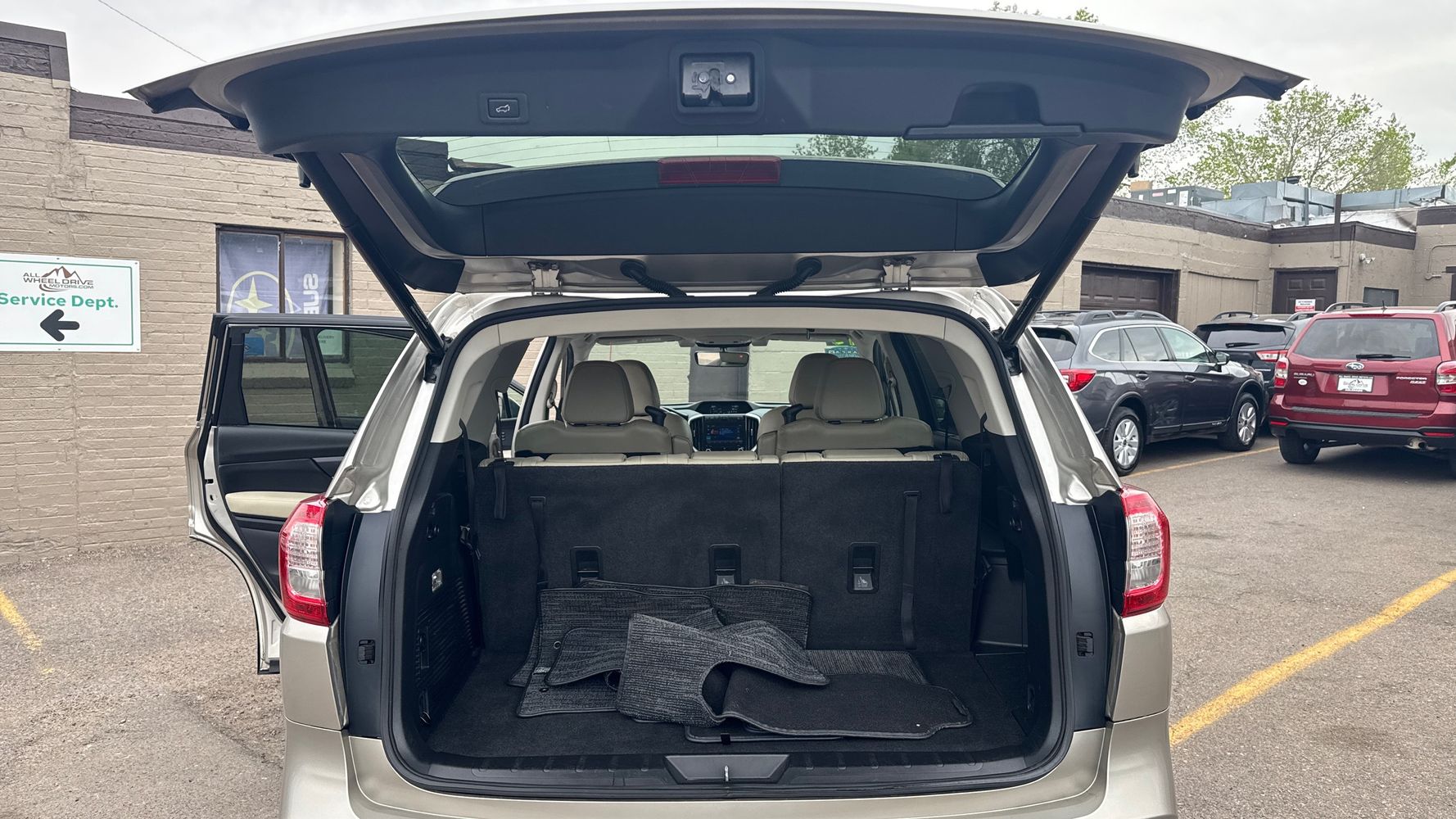 Third-row seatback upholstery: Carpet third-row seatback upholstery
